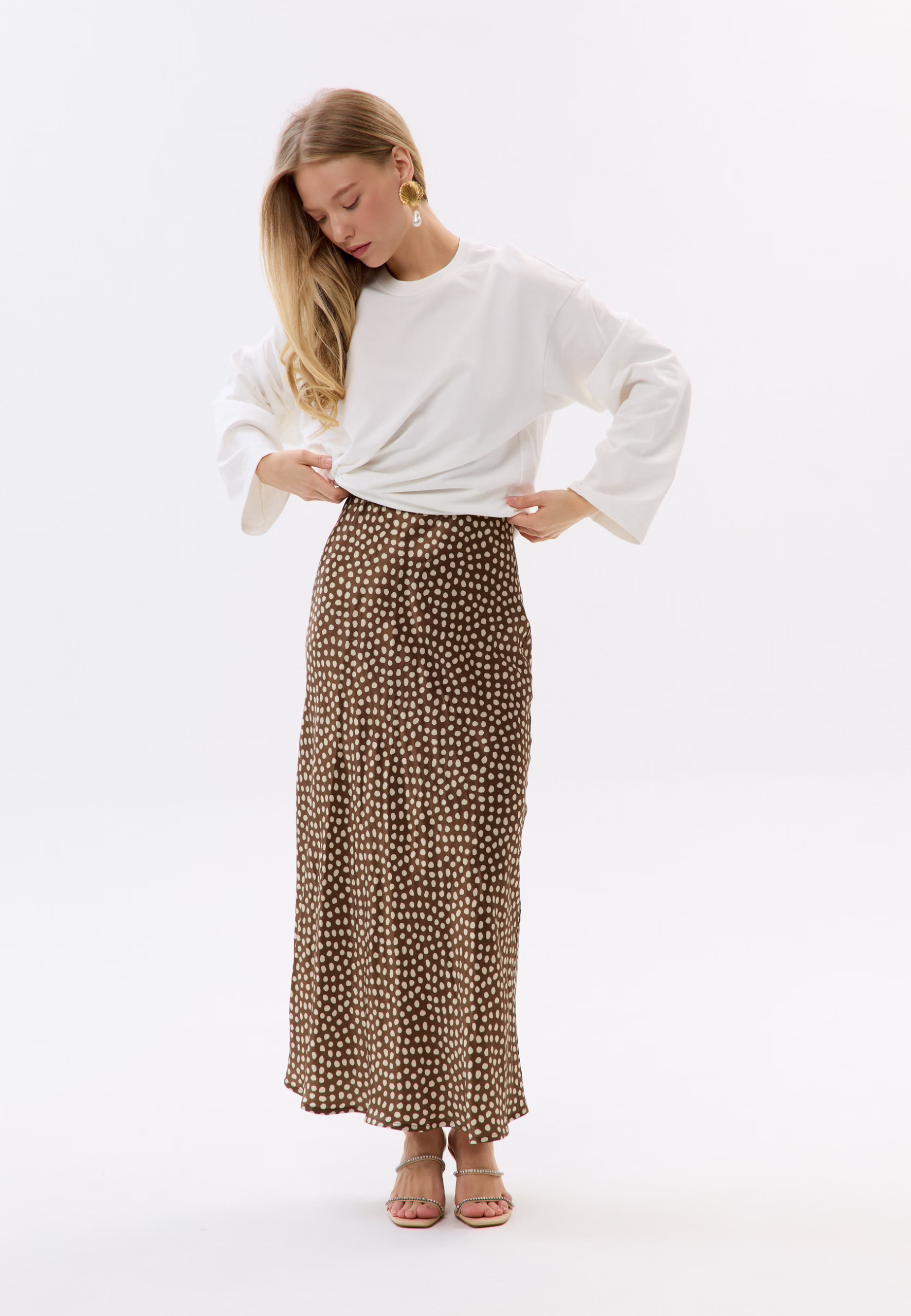 Tkanina z satynowej wiskozy o delikatnym połysku dodaje elegancji i lekkości.