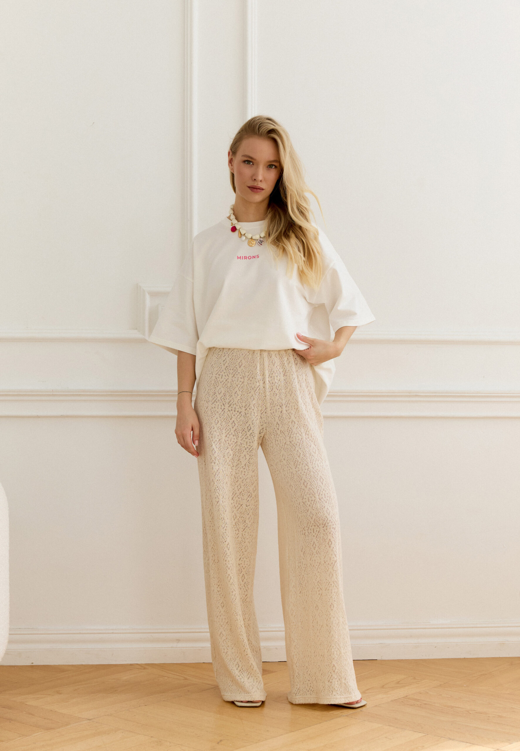 Spodnie na gumce o luźnym kroju posiadają wysoki stan i kieszenie, świetnie prezentują się w zestawie z śmietankowym longsleevem i czekoladowym wełnianym płaszczem z nowej kolekcji TRÈS CHIC.