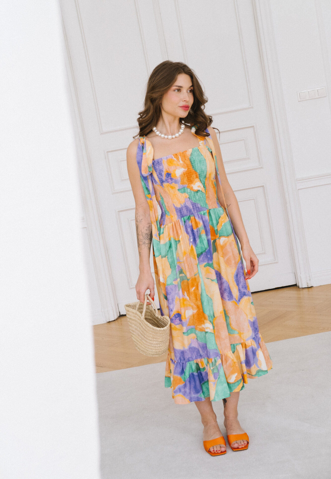 Model Michele to połączenie dwóch naszych bestsellerów! Efektowne bufiaste rękawy sukienki Katie oraz przepiękna, wyjątkowa spódnica sukienki Sabina tworzą duet idealny. Subtelny mleczny kolor w połączeniu z zielonym wzorem sprawia, że ta sukienka natychmiast przyciąga uwagę i wygląda niezwykle elegancko. To doskonały wybór na chrzciny, przyjęcia czy spotkania z przyjaciółkami. W sukience Michele Green Summer poczujesz się pewna siebie i zjawiskowa, emanując stylem i elegancją. Kasia ma 164 cm wzrostu, nosi rozmiar XS/S. Skład: Długość całkowita – 121 cm (rozmiar XS/S) Długość całkowita – 125 cm (rozmiar M/L)